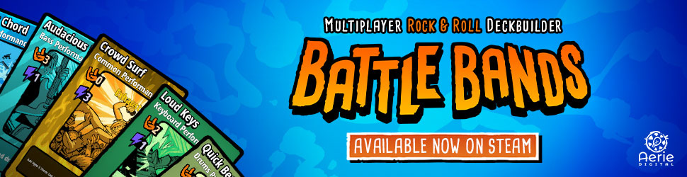 Throughout development, I was responsible for the majority of the promotional art for Battle Bands, including many different Steam capsules, web ads, and community outreach related images.